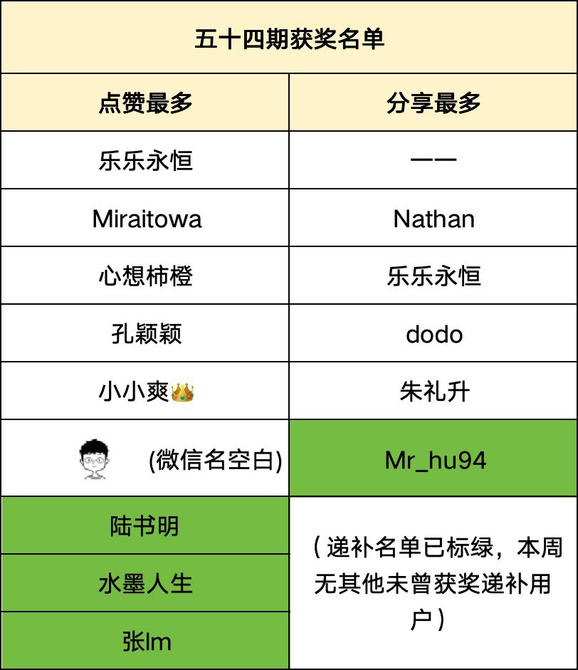 ②每周发放20份,分别取“点赞”前10名和“分享”前10名。若未获奖递补用户不够,也存在发放不满20份的情况。